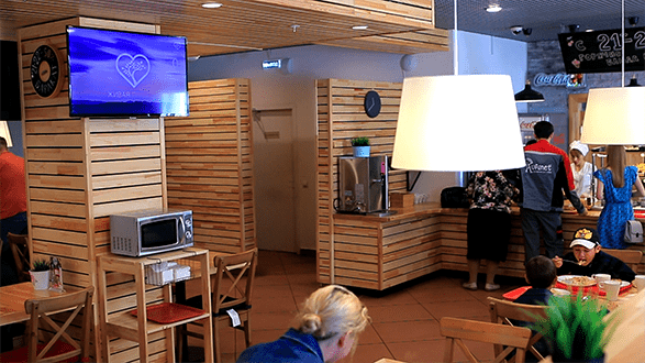 The managers of the city locations first watched the TV Channel at home to later make a decision and broadcast it on their locations' TV screens.